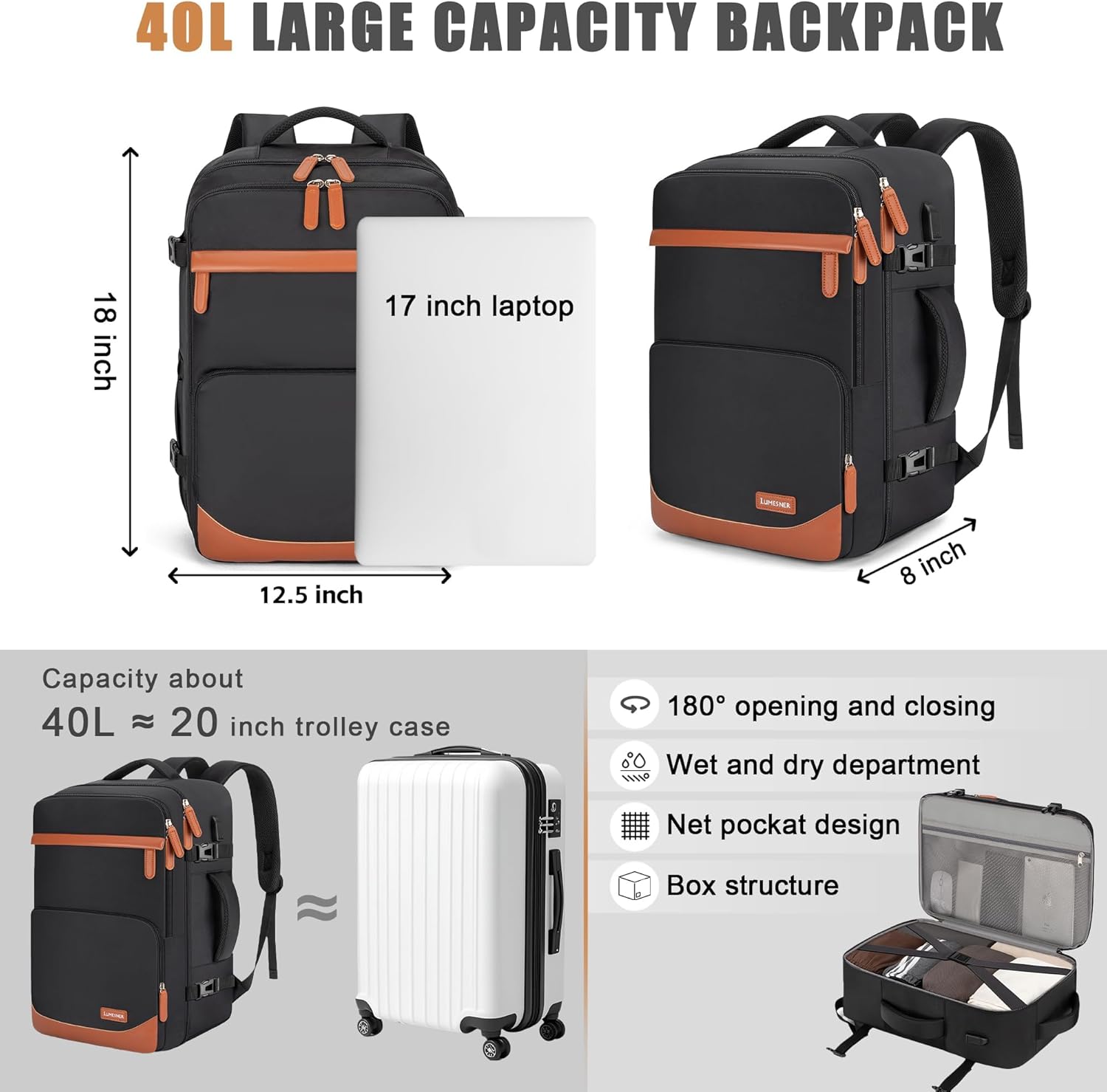 🎒【Spacious 40L Capability – Organized and Environment friendly】Designed with a number of useful compartments and a roomy inside, this 40L backpack matches a 17” laptop computer, garments, and day by day necessities with ease. Preserve your objects neatly organized whether or not you are heading to work, or a weekend getaway