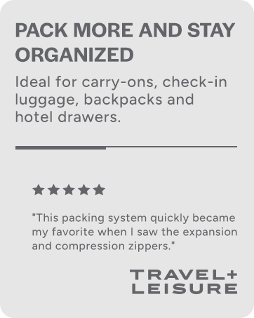 We’re fixing the effort of disorganized, overstuffed baggage by providing a wise, space-saving method to pack effectively and keep organized on the go.