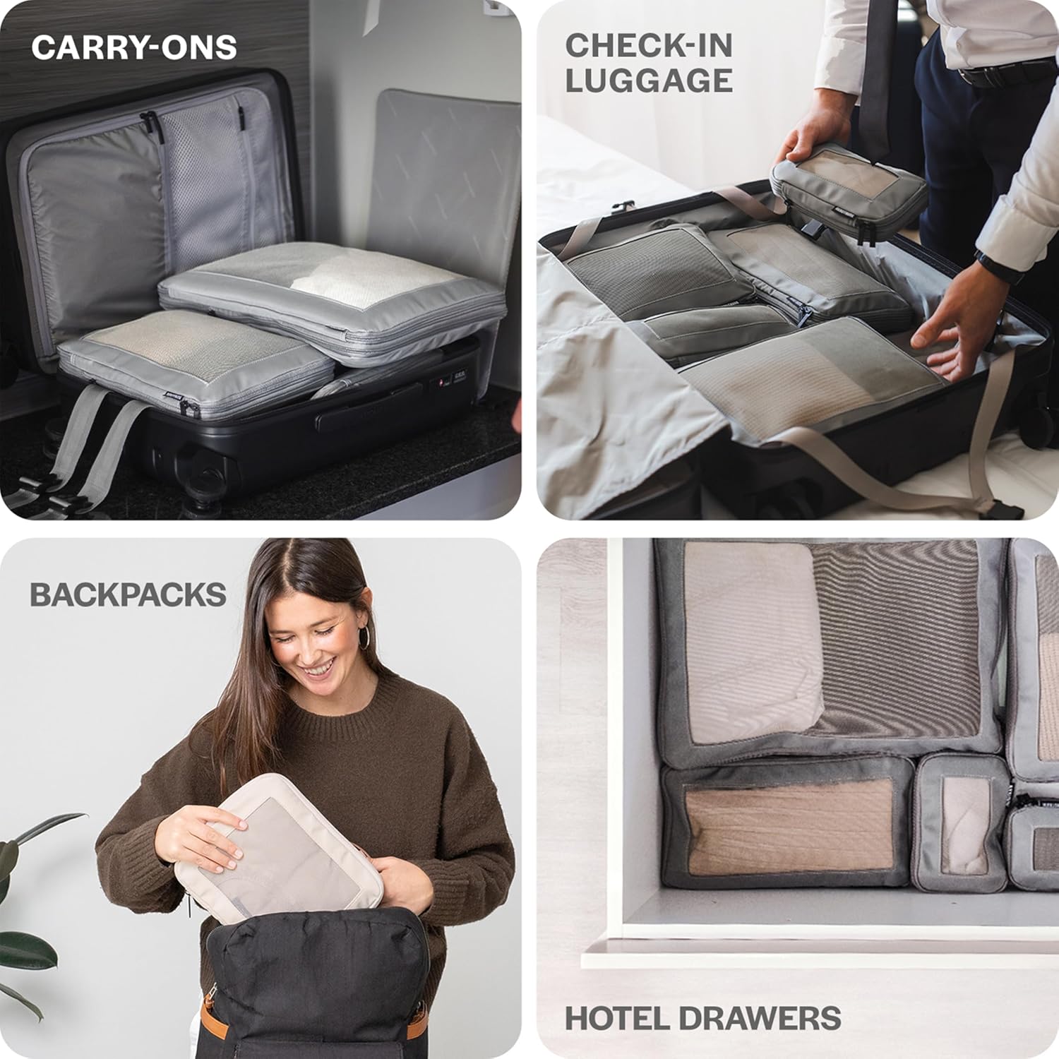 WILL FIT PERFECTLY IN MOST LUGGAGE – Our compression journey cubes will match completely in most suitcases & backpacks. We suggest 2 PCS set for backpacks, 4 PCS set for carry-ons & 6 PCS set for check-in baggage.