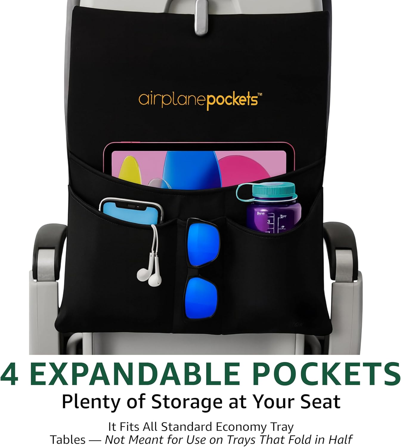 No extra digging via seat pockets or luggage. Airplane Pockets has 4 spacious compartments to carry tablets, books, drinks, and different flight necessities. Its light-weight, sturdy, and stretchable design slides simply onto tray tables, making it a great airline pocket organizer for frequent flyers looking for comfort and group.