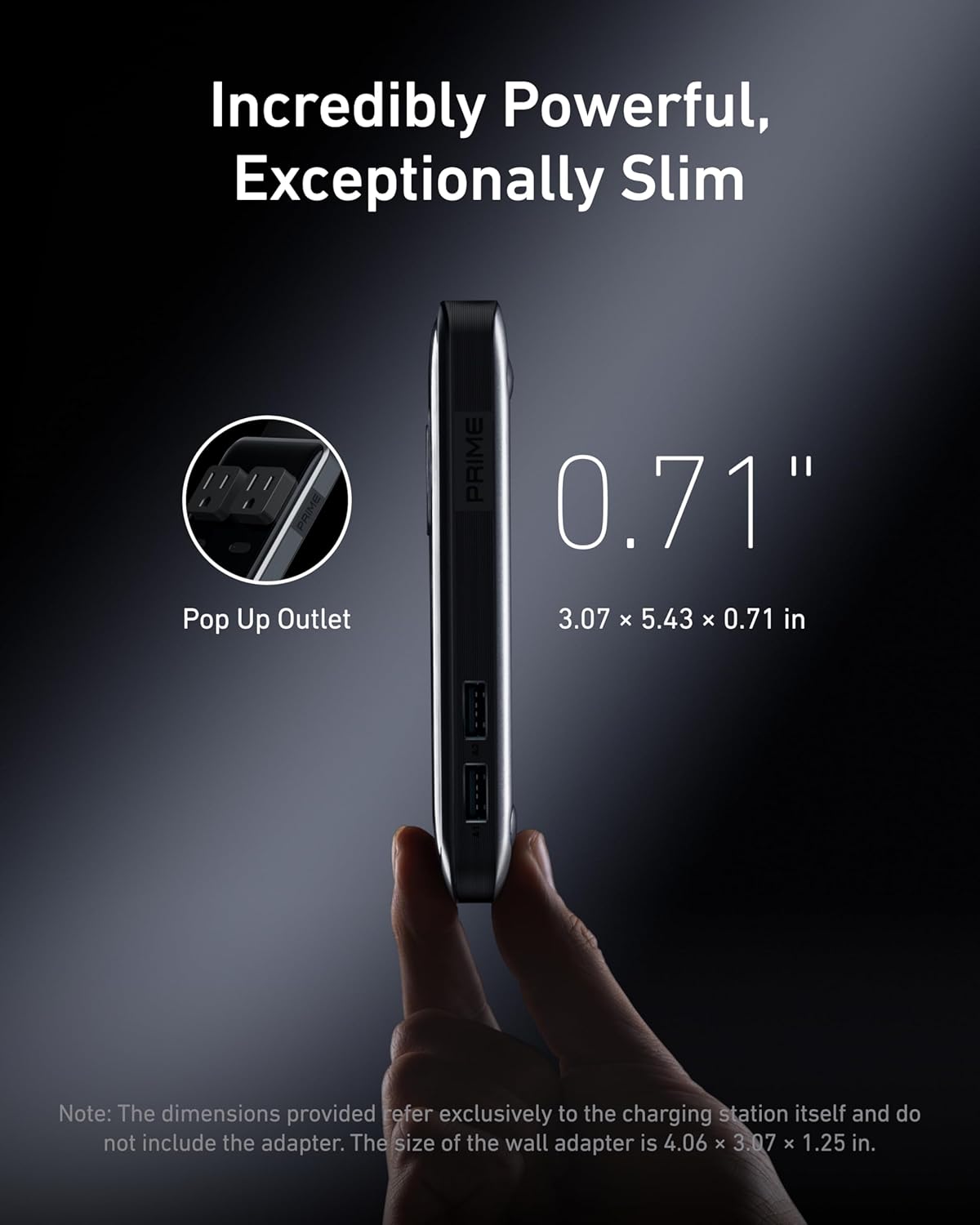 Minimal Area, Most Energy: This ultra-compact charging station measures solely 3.07 ร— 5.43 ร— 0.71 inches and features a pop-up outlet for straightforward entry.