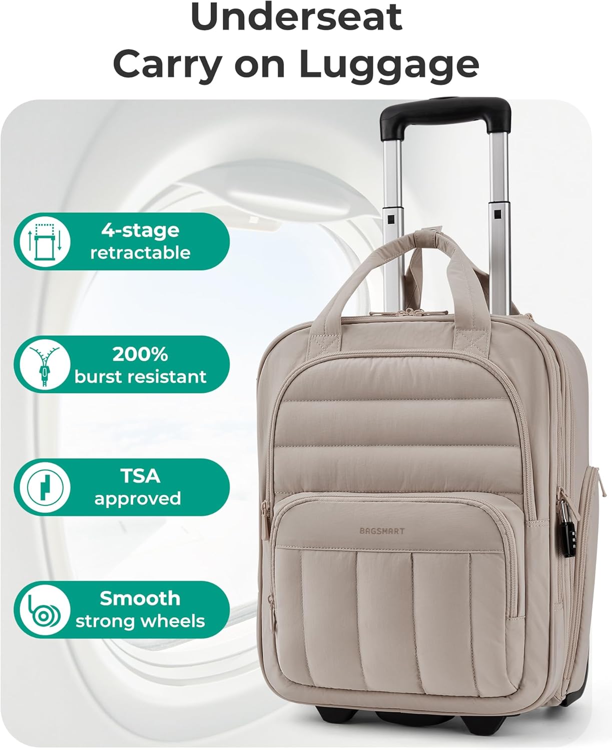 Trouble-free Journey: The bags strap on the again helps you to stack your underseat baggage atop your bigger carry-on baggage, whereas silent double wheels guarantee easy motion in any situation, now not burdened by a heavy backpack in your shoulders!