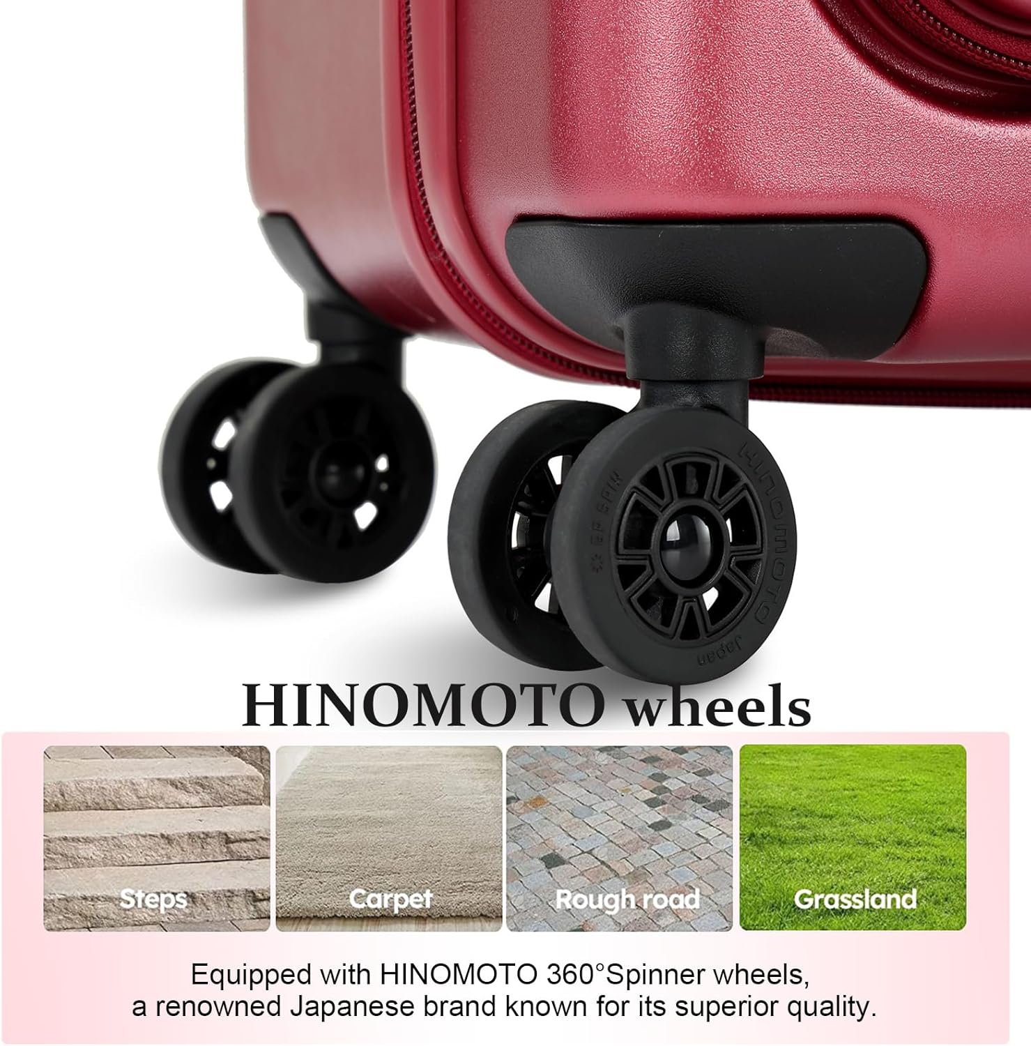 Silent Glide, Easy Journey: Geared up with HINOMOTO wheels, a famend Japanese model identified for its superior high quality, our baggage ensures a quiet and easy rolling expertise. These wear-resistant wheels are designed to glide effortlessly, permitting you to navigate via airports or crowded locations with ease.
