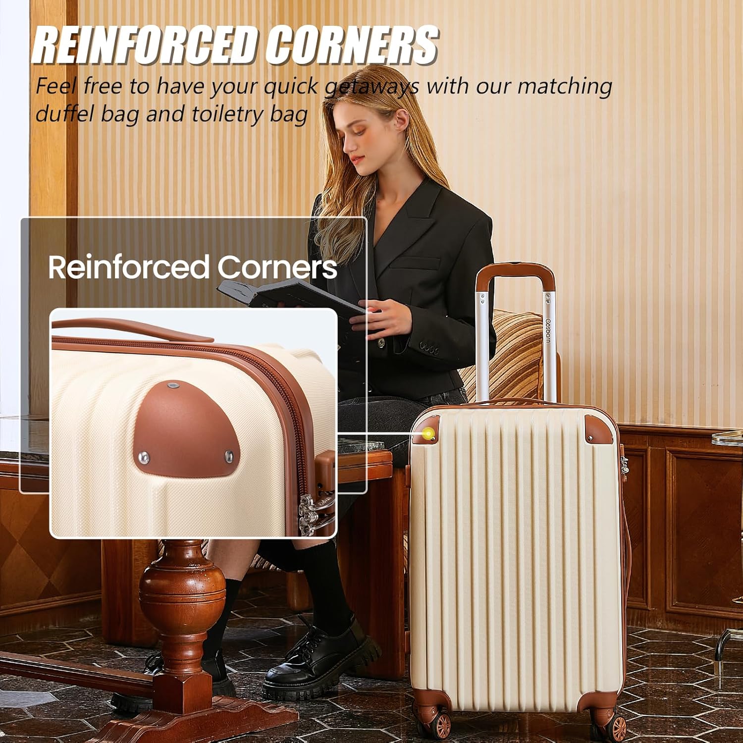 【TSA Lock & Cosbarn Zipper】Mounted TSA-approved lock, and fully-lined inside divider with group pockets, preserve your belongings secured and arranged within the baggage. Journey baggage units with bolstered and upgraded Cosbarn zippers to successfully stop zipper splitting.