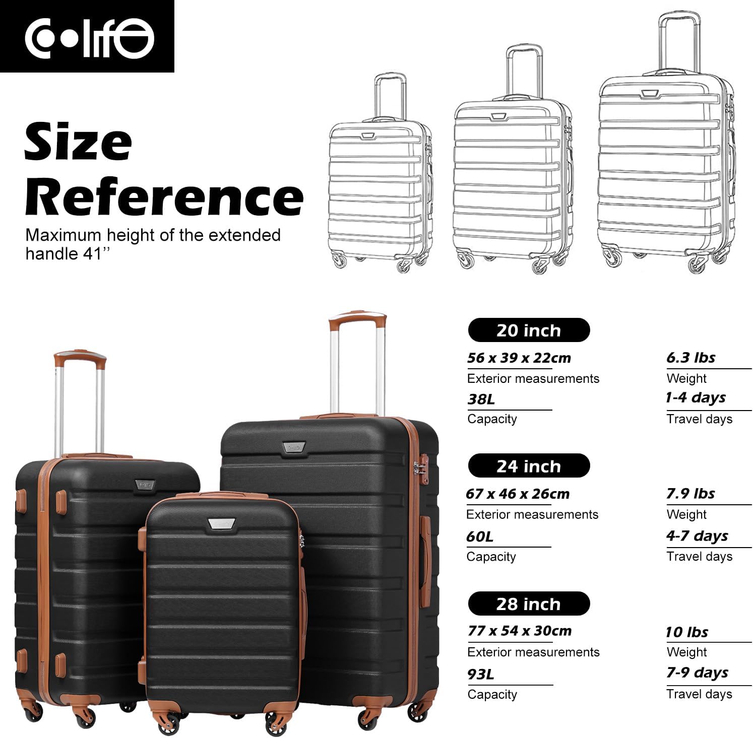 3 piece baggage set 20 inch,24 inch,28 inch upright, might be saved one into one other.100% ABS, Light-weight but extraordinarily sturdy abs materials.