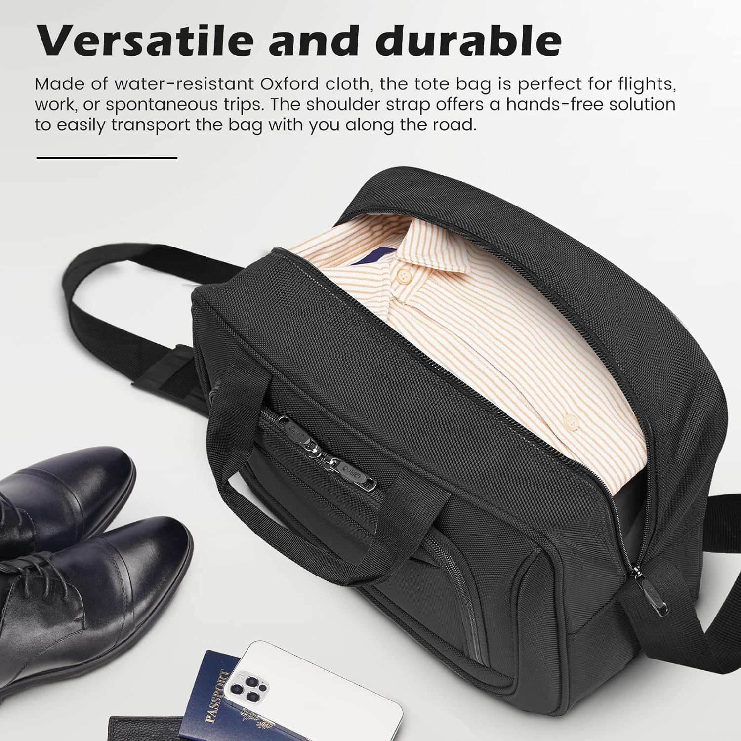 Product of a water resistant Oxford material, the tote bag is ideal for flights, work, or spontaneous journeys. The shoulder strap provides a hands-free resolution to simply transport the bag alongside the highway.