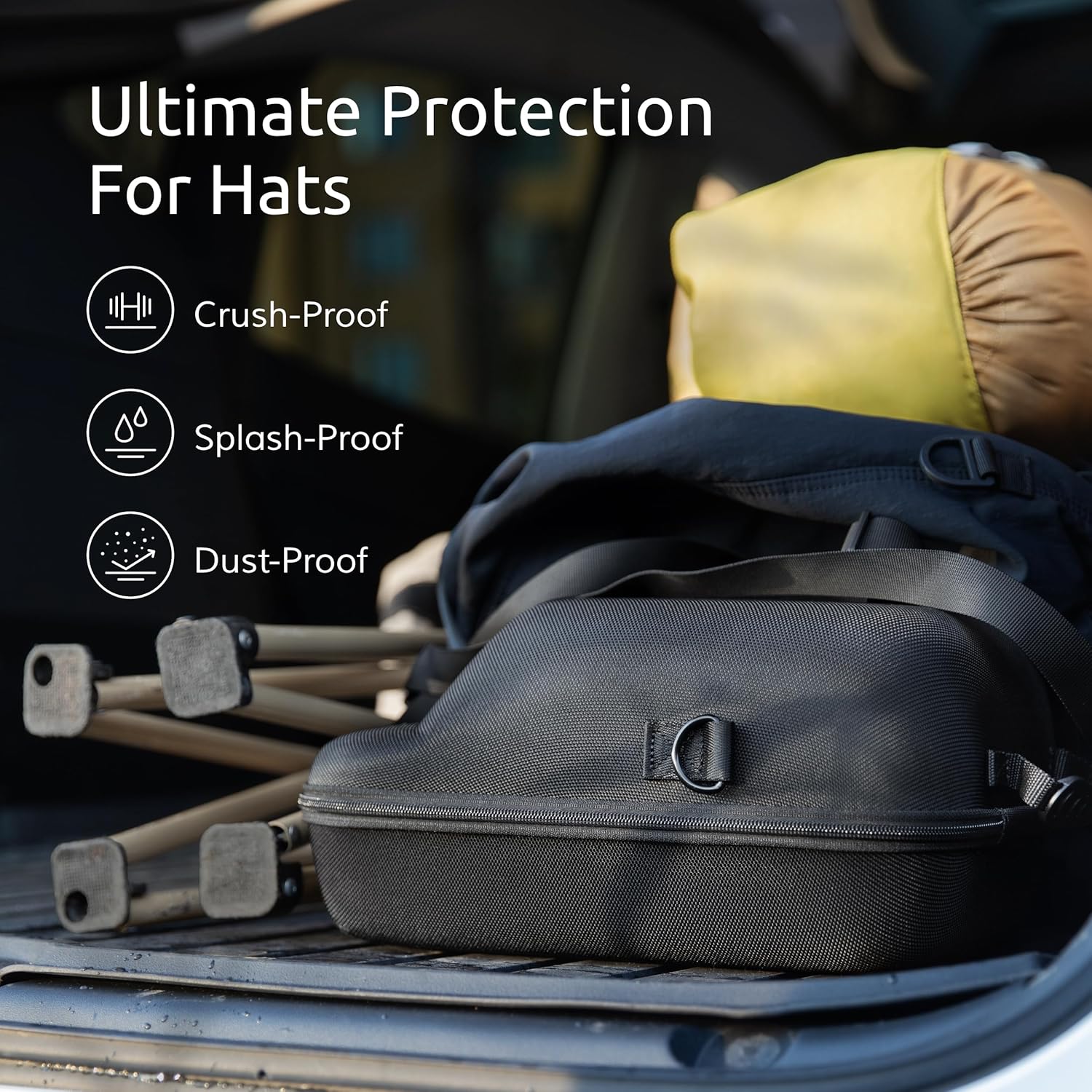 The journey hat case is splash-resistant, which suggests it is ready to defend your caps from unintended spills and watersplashes.