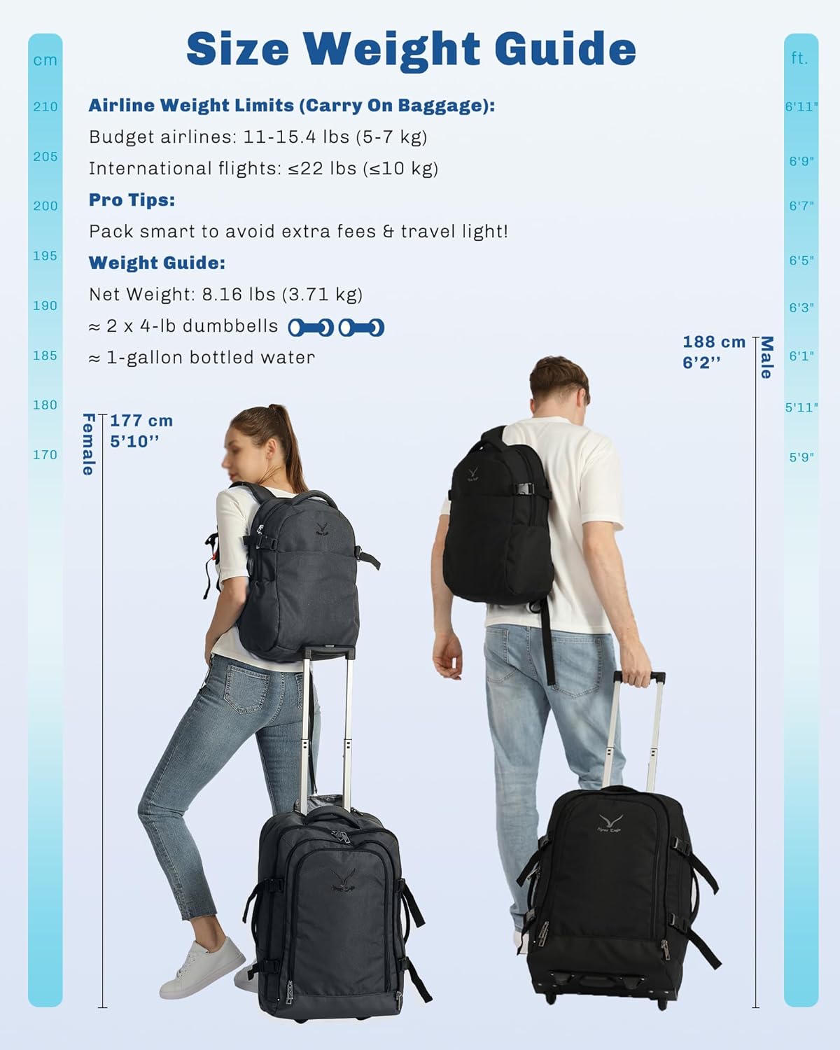 Flight Accepted Dimension: American Airways, Breeze Airways, Frontier Airways, Air New Zealand and so on. (extra baggage coverage please assessment from airline web site)