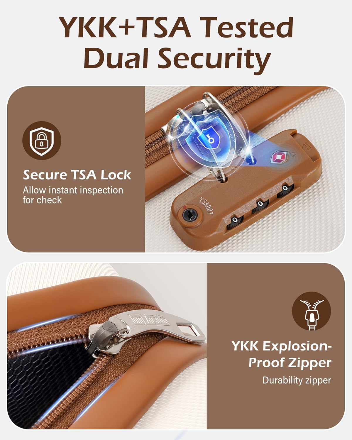 YKK+TSA, Examined Twin Safety: YKK explosion-proof zipper with 3,000 sturdiness take a look at and pry-proof tooth to stop puncture by sharp objects, making certain full journey safety. The TSA lock is likely one of the journey equipment that ensures you move via safety checks instantly throughout worldwide travels