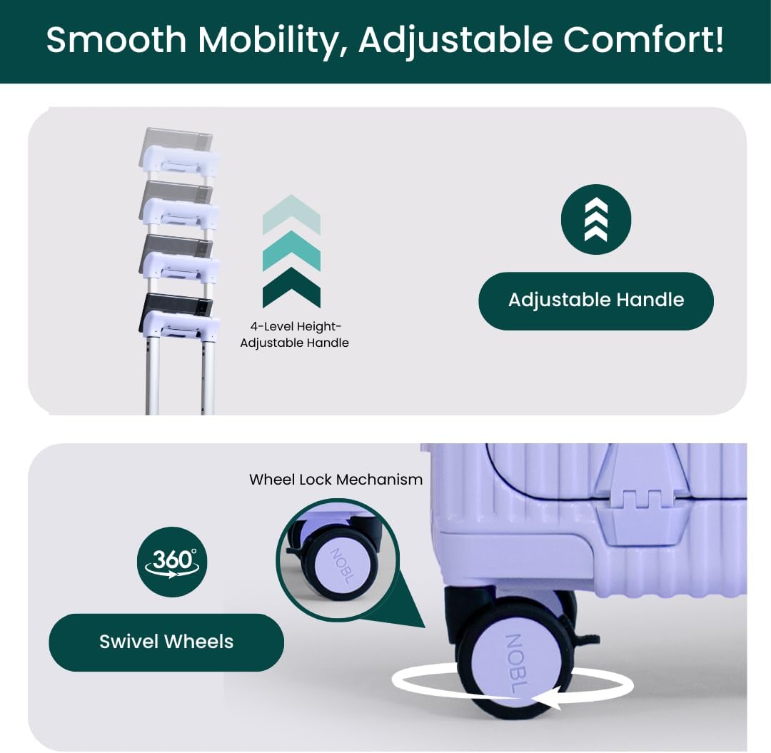 Easy Mobility & Consolation: 360° spinner rolling wheels glide easily, and the 4-level peak adjustable deal with ensures straightforward dealing with. Bag holder studs allow you to safe further luggage, good for enterprise journeys and weekend getaways.