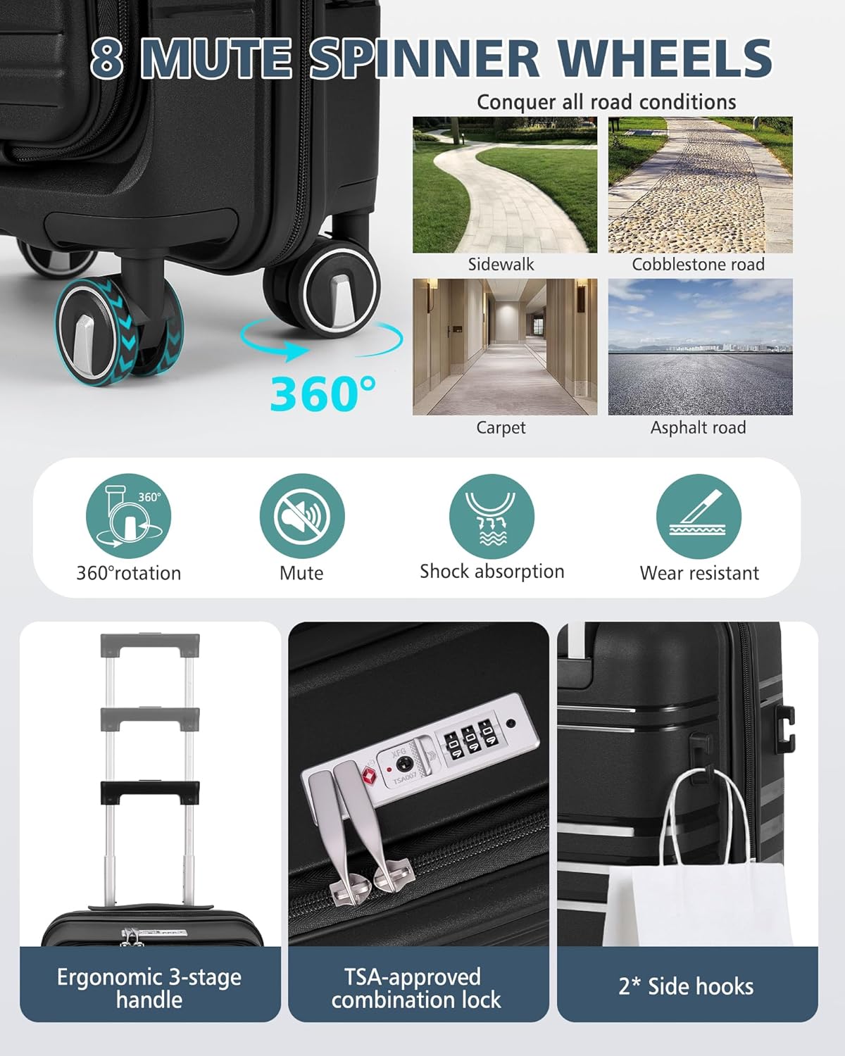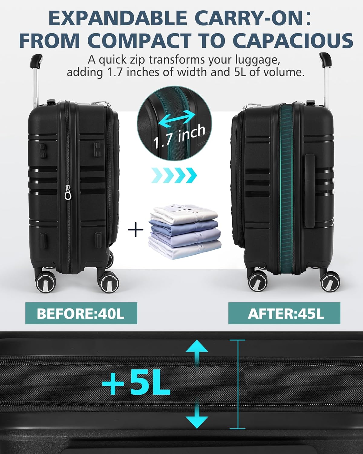 Expandable Zipper for 5L Further Capability: Want extra room for souvenirs or last-minute additions? Merely unzip the zipper to immediately achieve 5L of additional area, no extra over-packing stress! This versatile design adapts to your journey, from compact enterprise journeys to prolonged getaways. Constituted of sturdy light-weight hard-shell, this Journey Suitcase combines flexibility with resilience, making certain all the pieces keep protected whereas providing you with the liberty to pack extra if you want it