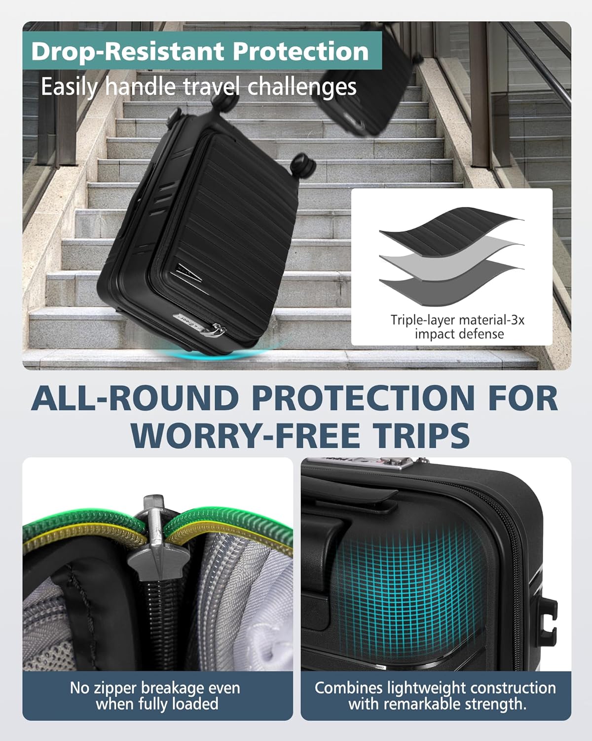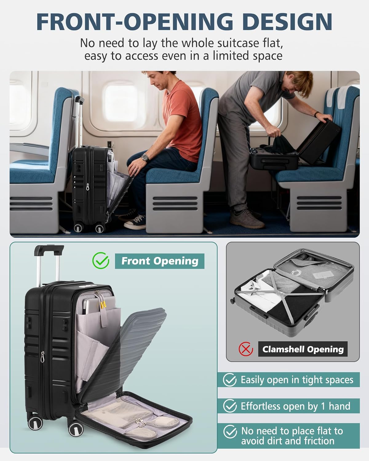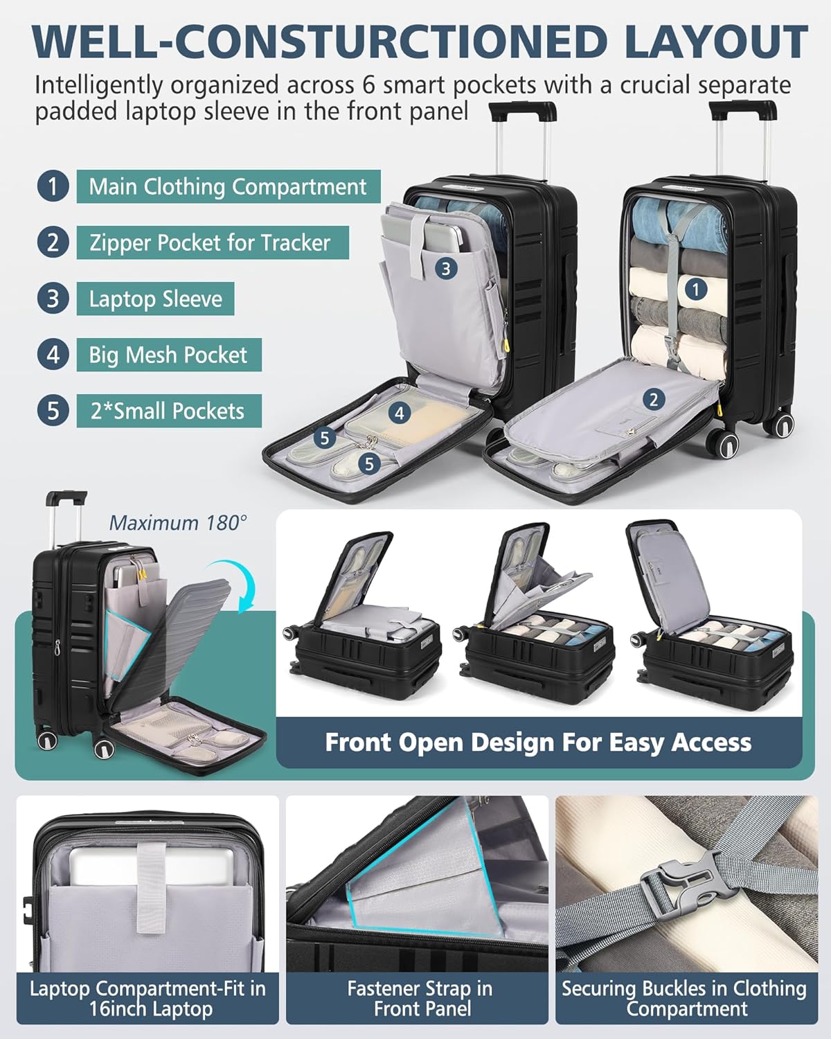 Entrance Opening & Devoted Laptop computer Sleeve: Uninterested in struggling to seek out objects in tight areas? Our carry-on suitcase contains a good front-flap zipper design, permitting immediate entry to necessities even in cramped airport queues or crowded cabins. The built-in padded laptop computer compartment securely holds gadgets as much as 15 inches, excellent for enterprise vacationers who must work on the go. Every thing stays organized and inside attain. Expertise stress-free, environment friendly packing with this Journey Baggage