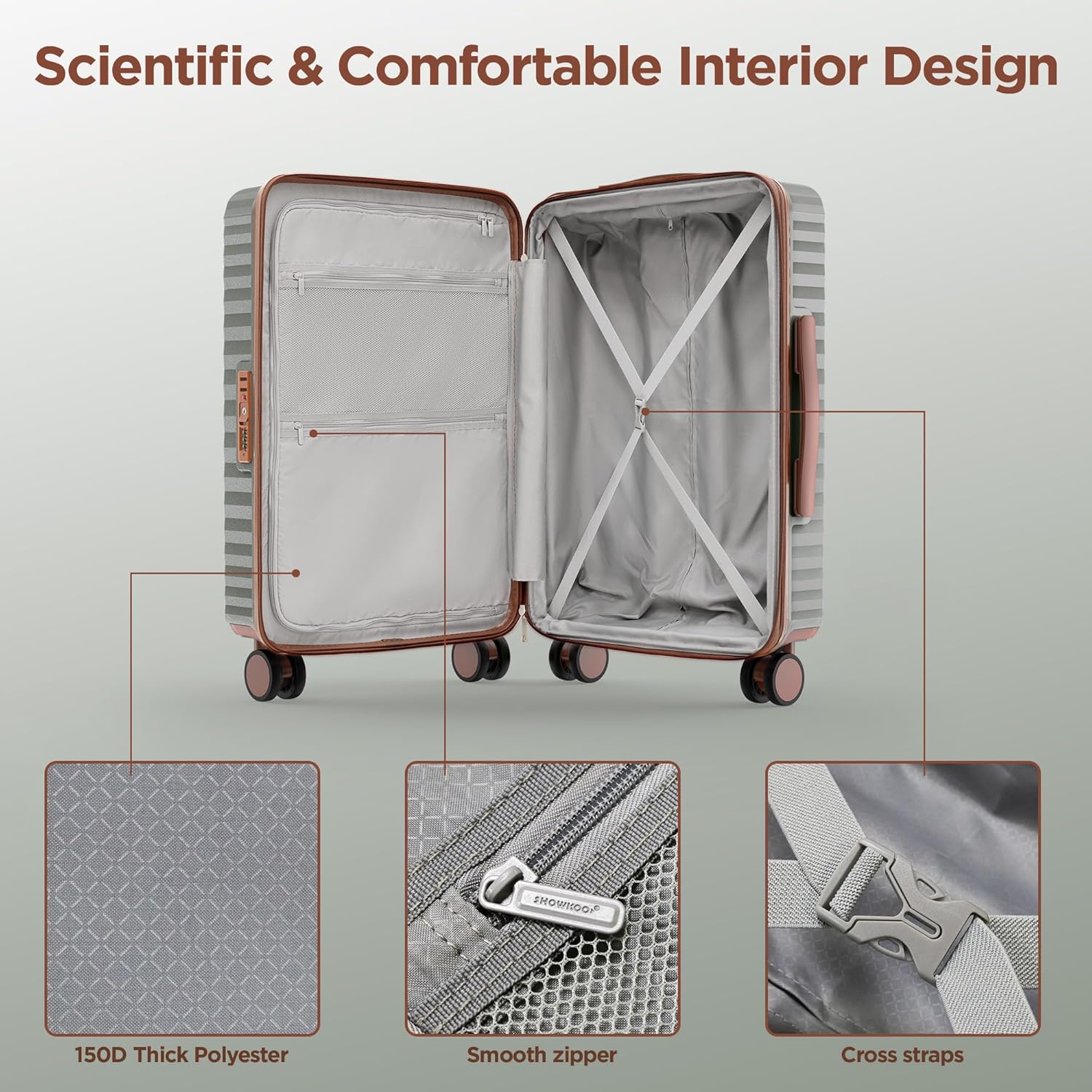 Scientific Design: The inside of the hardshell baggage is provided with mesh pockets. The cross strap protects the luggage within the baggage to stop motion that will trigger harm, and in addition helps to maintain baggage organized.