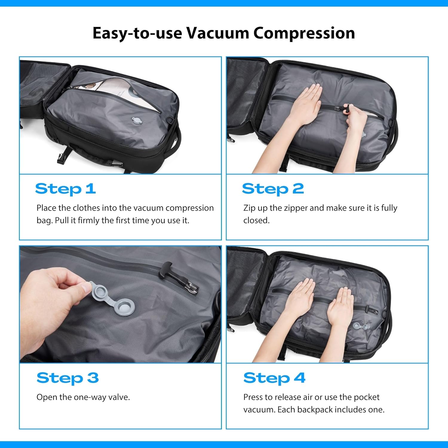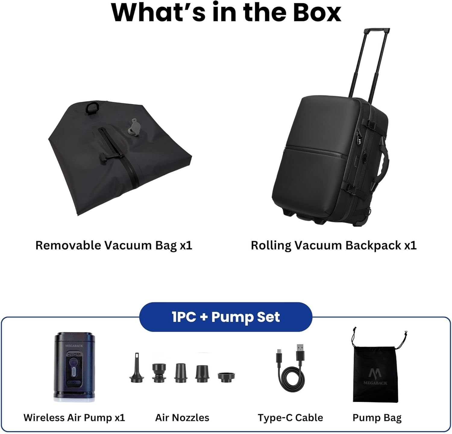 【Revolutionize Your Journey】The Megaback vacuum backpack journey with pump maximizes packing house with a built-in vacuum compression system, good for environment friendly, space-saving journeys