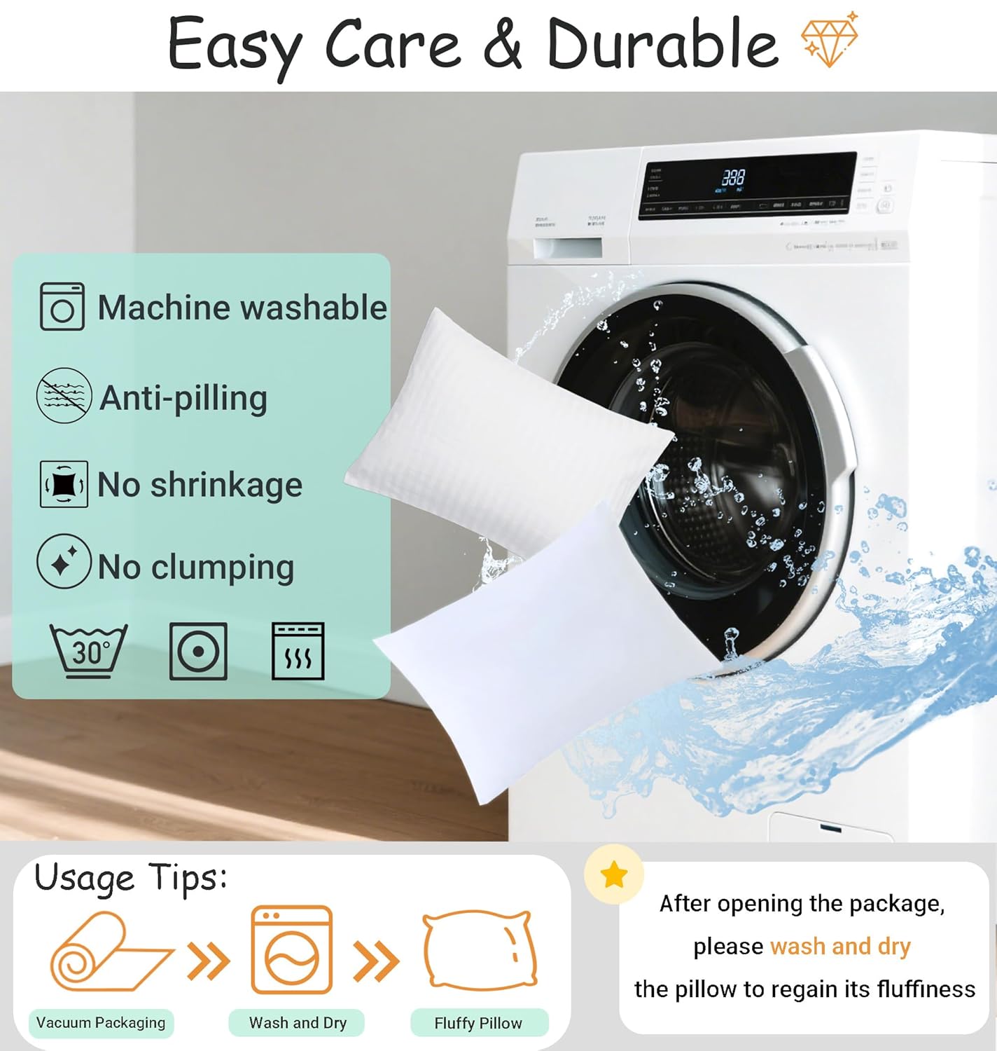 EASY CARE: Machine cleanable and tumble dryable; no shrinking, pilling, and clumping, sun-cure your pillows recurrently to maintain them fluffy